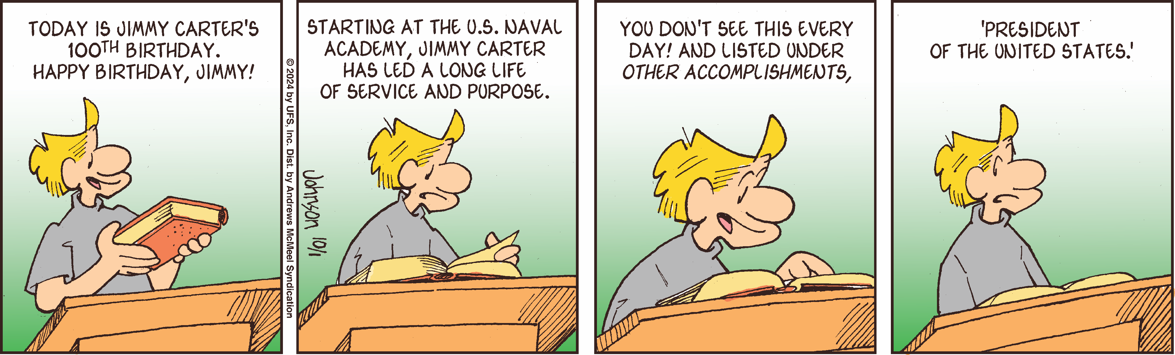 An Alabama native born in the last days of the Truman administration, Jimmy Johnson studied journalism at Auburn University and worked as a newspaperman and editorial cartoonist. His editorial cartooning for The Jackson (Mississippi) "Daily News" was honored by the Robert F. Kennedy Journalism Awards. His original comic strips were the focus of a groundbreaking art exhibit at The Bryant Galleries in Jackson, Mississippi. Johnson works out of his spare bedroom and lives and sails his boat, Willie and Joe, in the Tennessee River Valley.