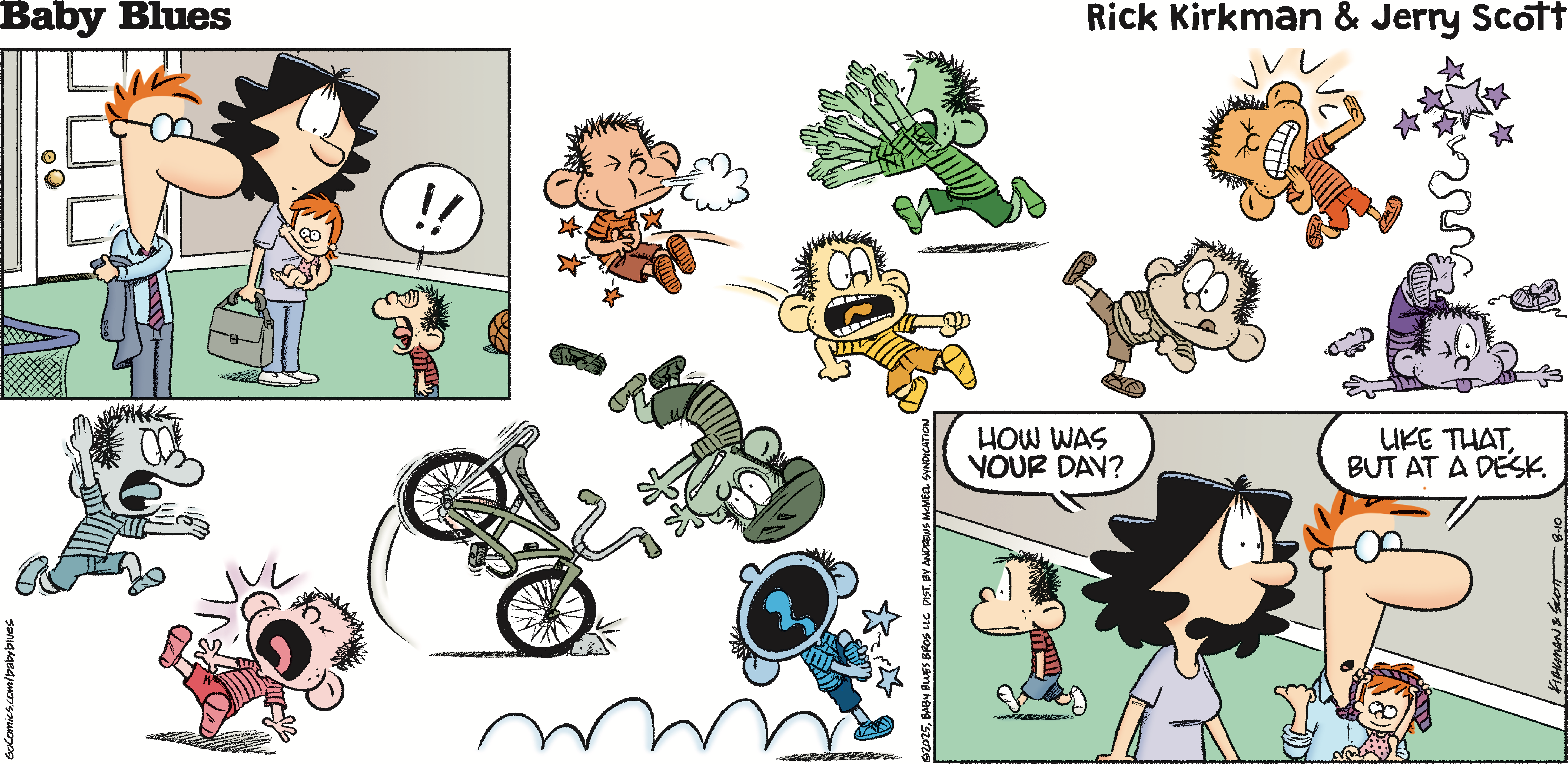 “Baby Blues” was released in syndication in 1990. It currently runs in more than 1,200 newspapers in 28 countries and 13 languages. There are 45 “Baby Blues” collection books in print, with well over a million copies sold. In fact, check out the newest volume now: "Everything Everywhere...: A Baby Blues Collection"!