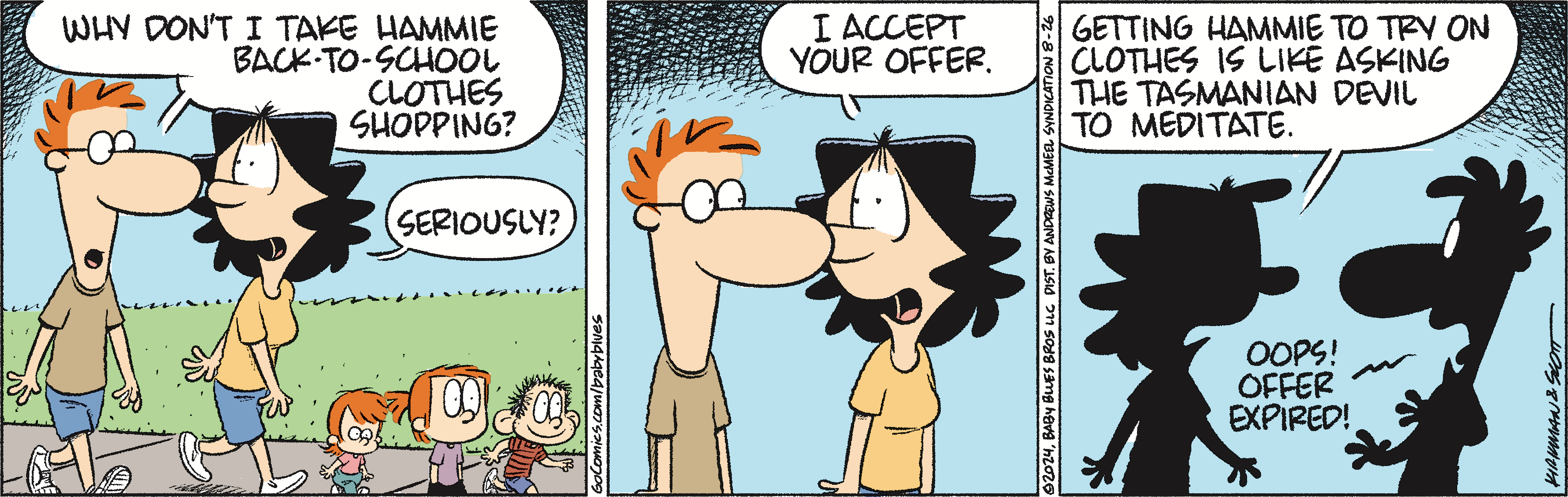 “Baby Blues” has enchanted new parents, grandparents, and kids alike since it first appeared on the comics pages in 1990. As the years passed, the list of newspapers carrying the feature has grown almost as fast as the MacPhersons' kids!