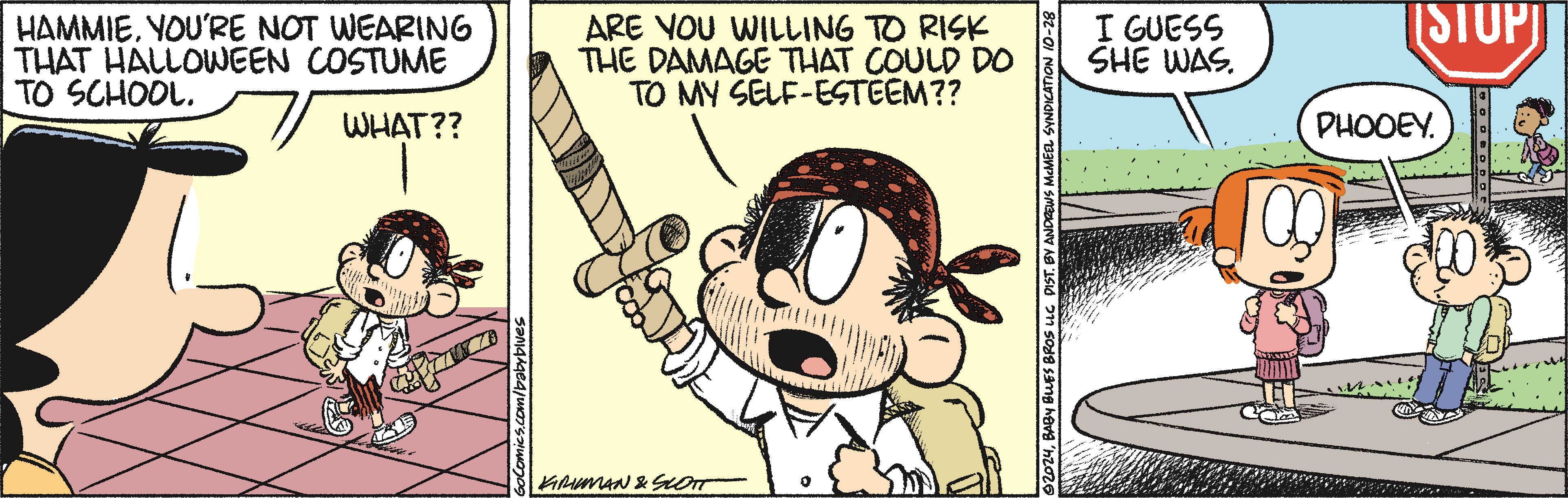 Just when the MacPhersons thought it was safe to ditch the crib, baby Wren came along. Wren is a quiet, observant toddler. With guidance from big sister Zoe and misguidance from big brother Hammie, Wren should turn out to be an interesting kid. Right now, her main job is keeping the “baby” in “Baby Blues.”