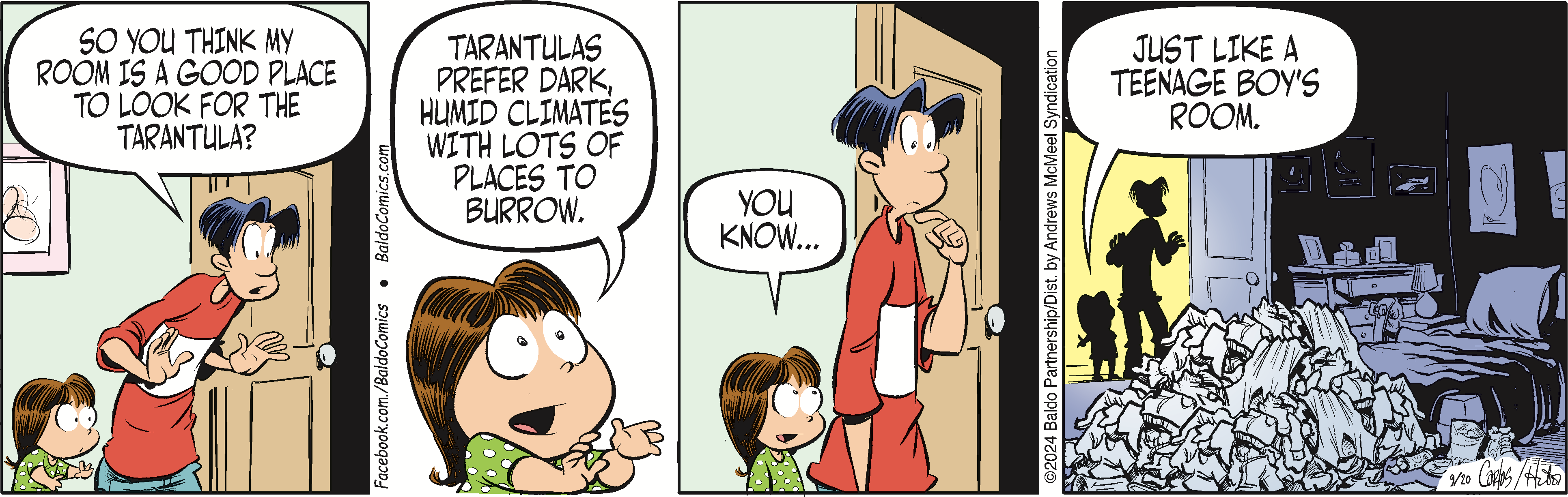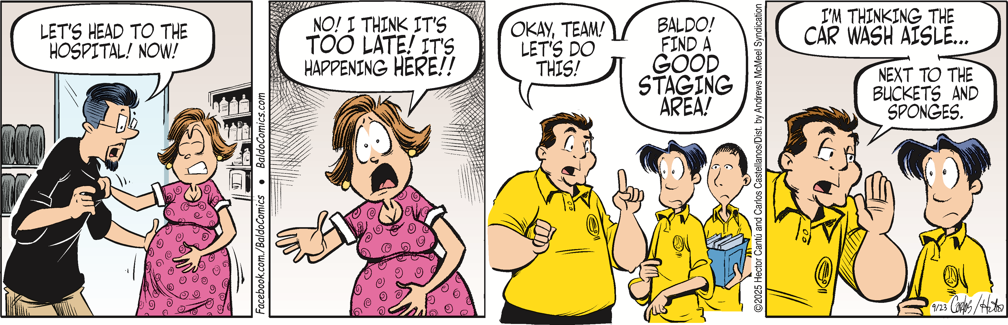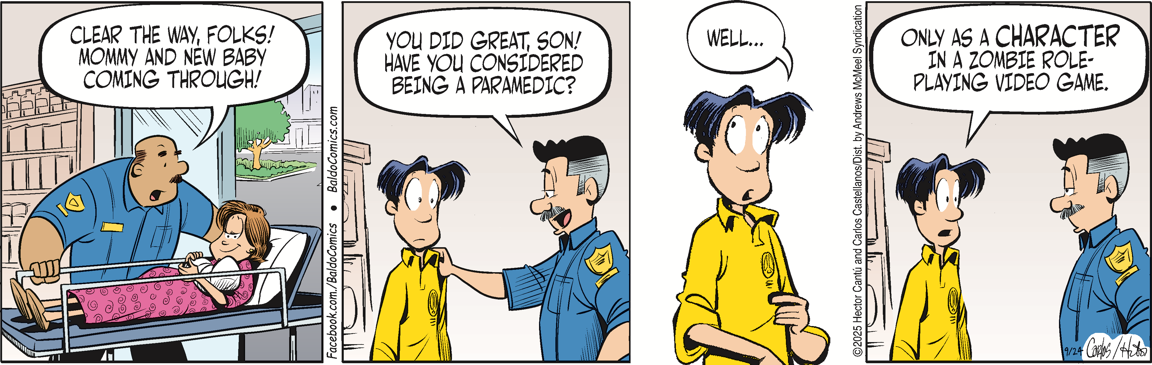 Carlos Castellanos is the artist behind the comic strip “Baldo.” Castellanos is originally from Cuba and was always interested in drawing. Around the age of seven, he recalls watching his first episode of "Bewitched." Watching Darrin Stephens sitting behind a large drawing table and working from home inspired the young man to do the same. He began his freelance career as an illustrator in 1981, while still in college. Castellanos now lives in West Palm Beach, Florida, and focuses on work for magazines, book publishers, ad agencies, corporate clients, and, of course, “Baldo.”