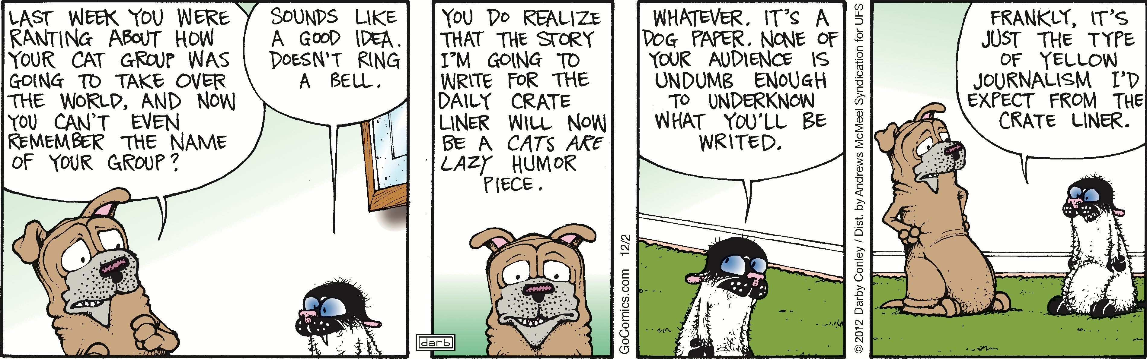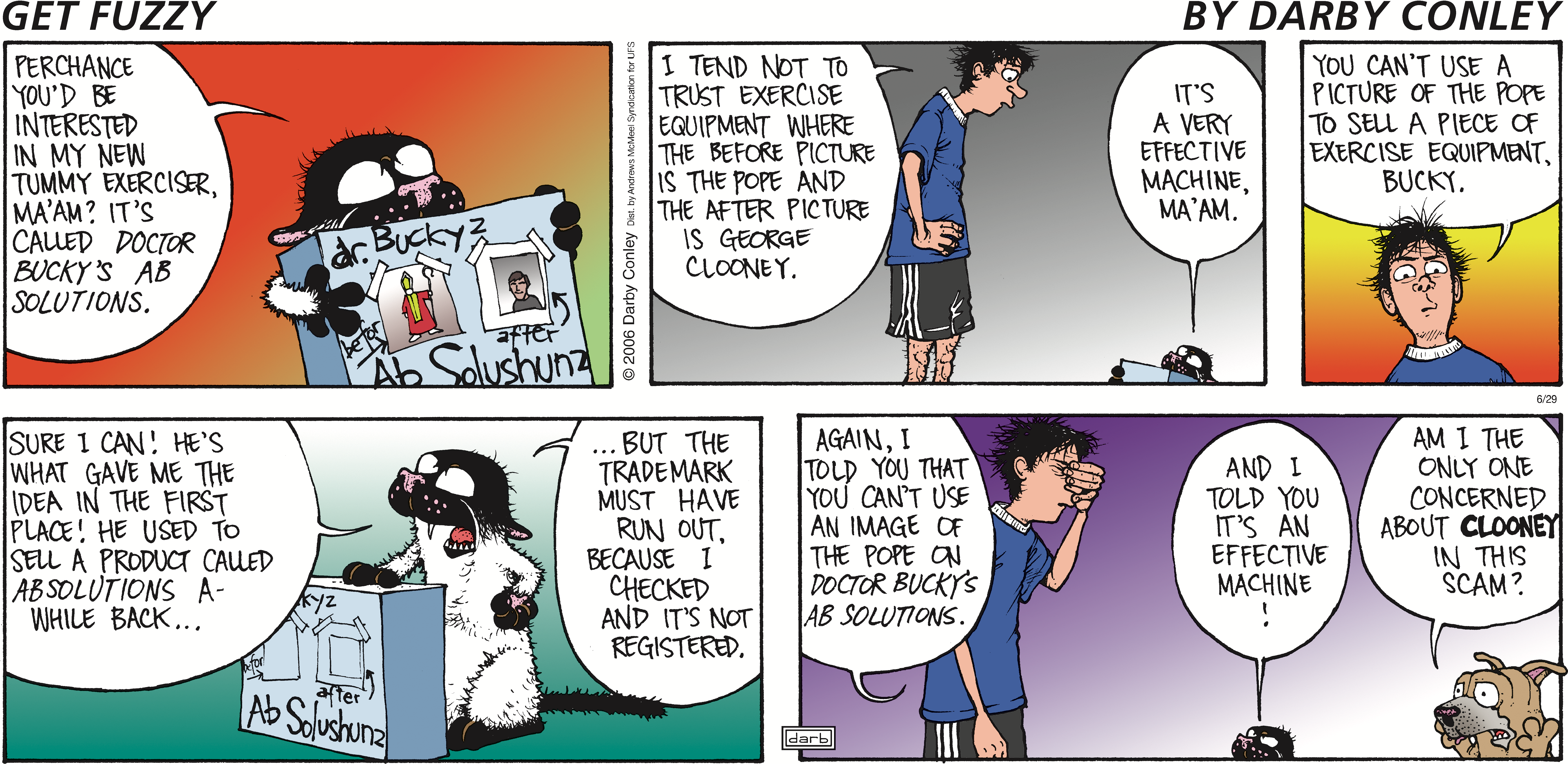 House cats are known to be aloof, but "cat-titude" reaches new heights in "Get Fuzzy," the bitingly hilarious comic strip from cartoonist Darby Conley. Available daily and appearing in 650 newspapers nationwide, "Get Fuzzy" is a wry portrait of single life with pets.