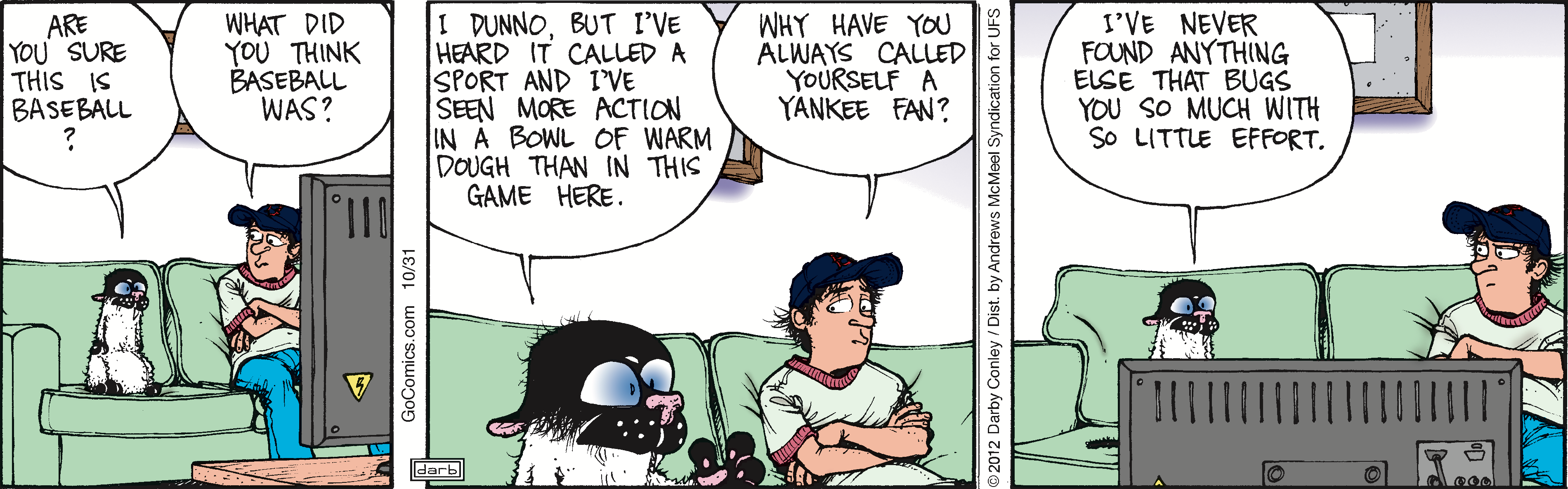 Born in Massachusetts, Darby Conley spent most of his childhood in Tennessee. He earned a fine arts degree at Amherst College and went on to become an elementary school teacher and the art director for a museum before launching "Get Fuzzy" in 1999.
