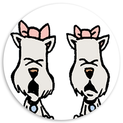 This pair of Yorkies is diabolically evil and can always be found on guard by their living room window, scheming to humiliate and annoy all who dare to pass by.