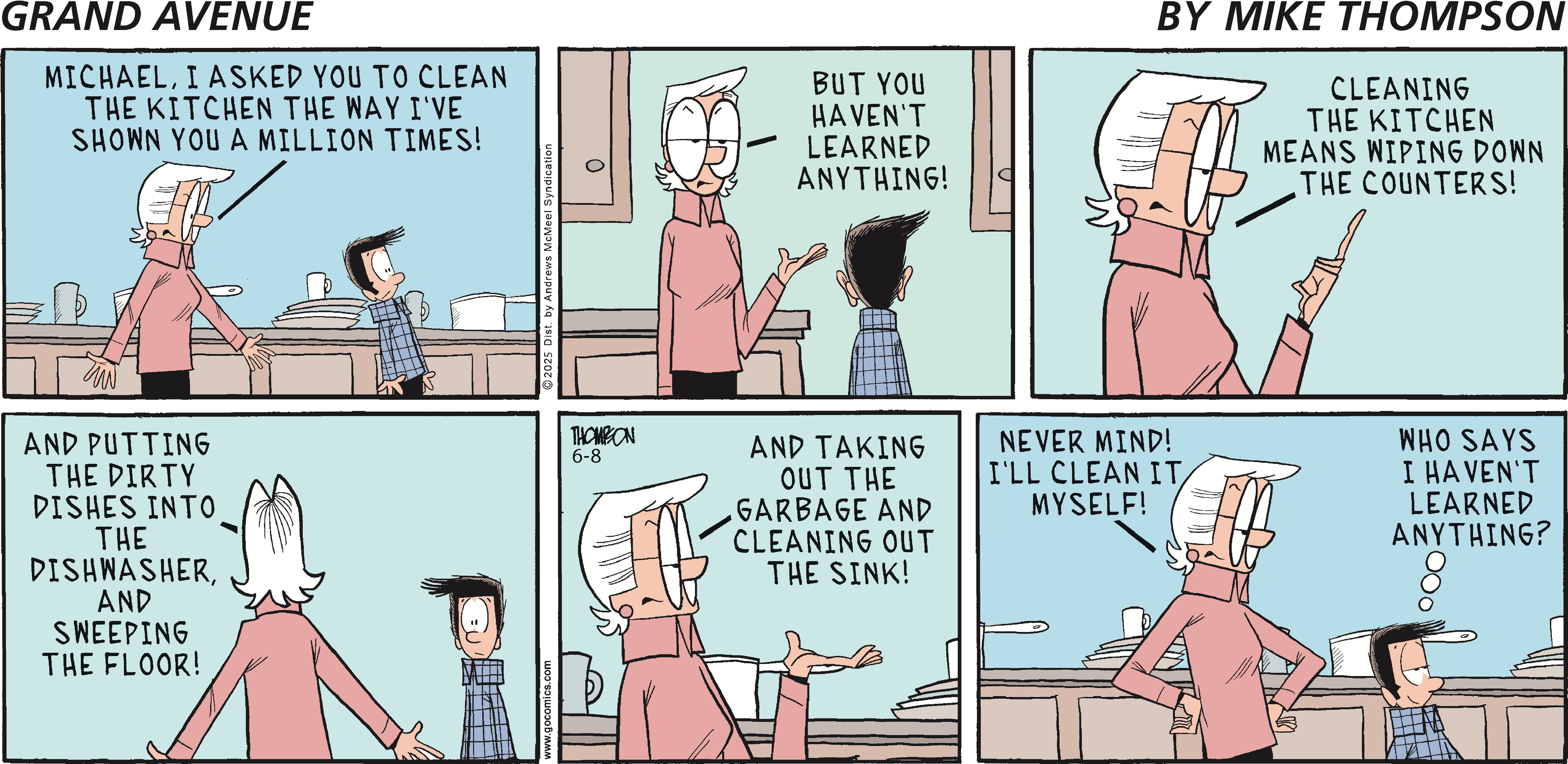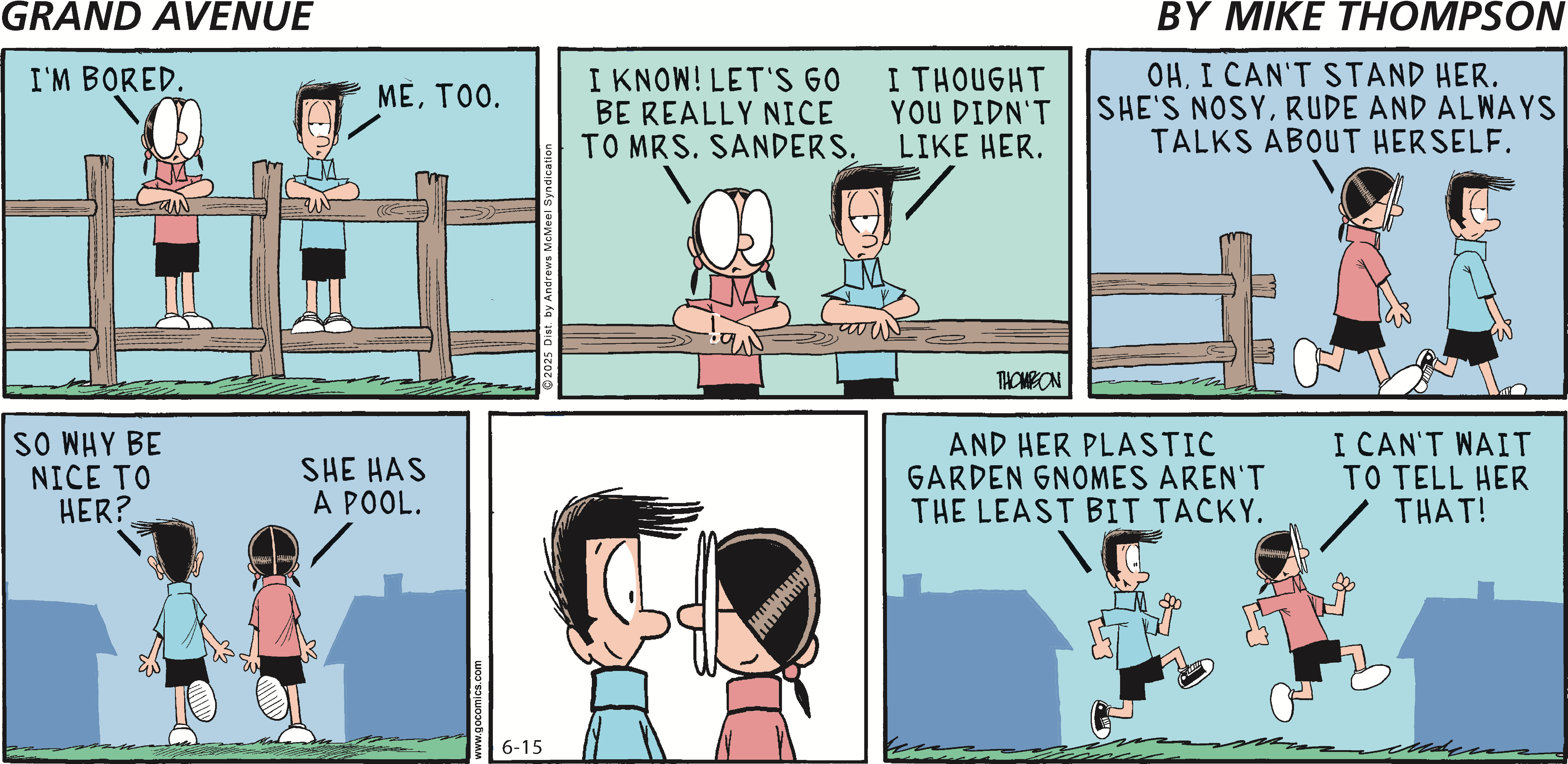 "Grand Avenue" stars Kate Macfarlane, an avid sports fan who power walks to stay in shape. Not your typical cookie-baking granny, Grandma Kate has her hands full with her terrific twosome, who are best buddies even though their personalities clash. Gabby is an ambitious, newspaper-reading little girl who plans to become a billionaire before she's 30. Her brother Michael is a more sensitive soul who prefers riding his skateboard or performing scenes from Shakespeare to just about anything else.