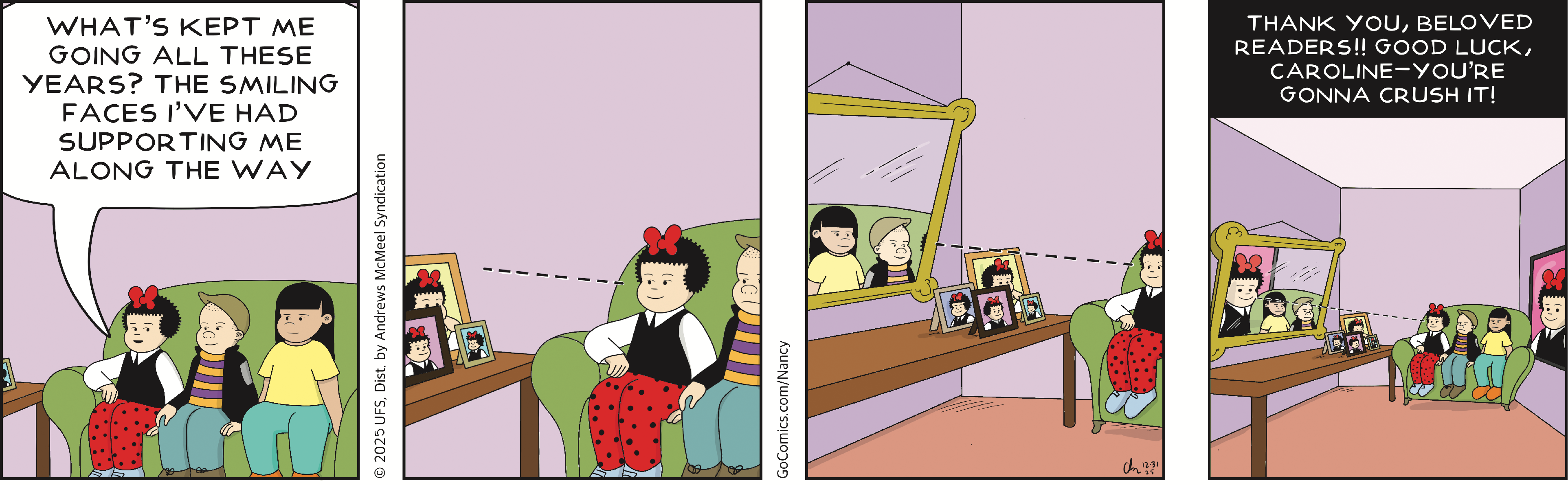 In 1933, Fritzi’s niece, Nancy, made her first appearance in the comic. Nancy was such a fan favorite that by 1938, the comic’s name was changed from “Fritzi Ritz” to “Nancy” to honor the shift in emphasis. Olivia Jaimes took over the strip in 2018 until her retirement in September 2025. The newest creator, Caroline Cash, started her tenure on Jan. 1, 2026.