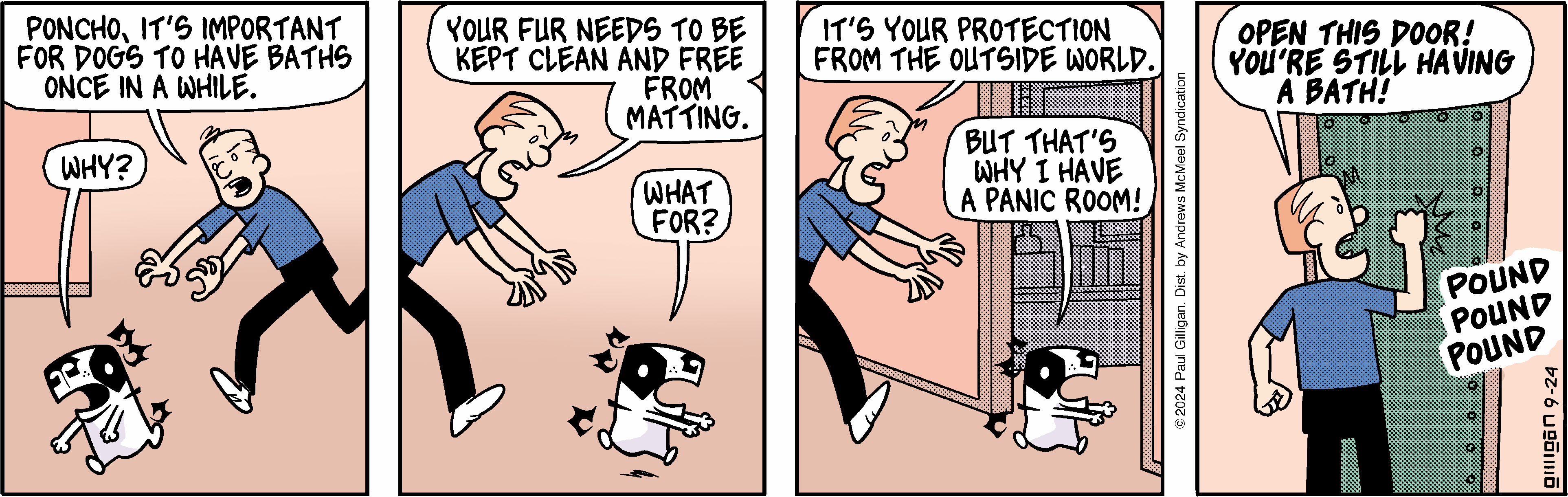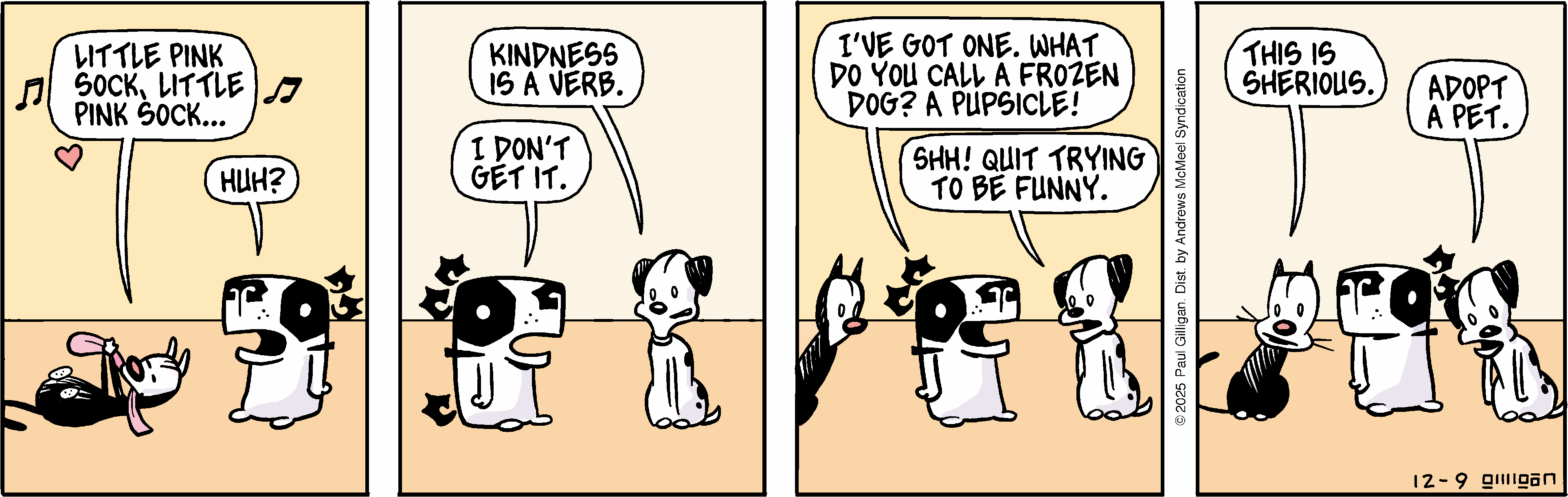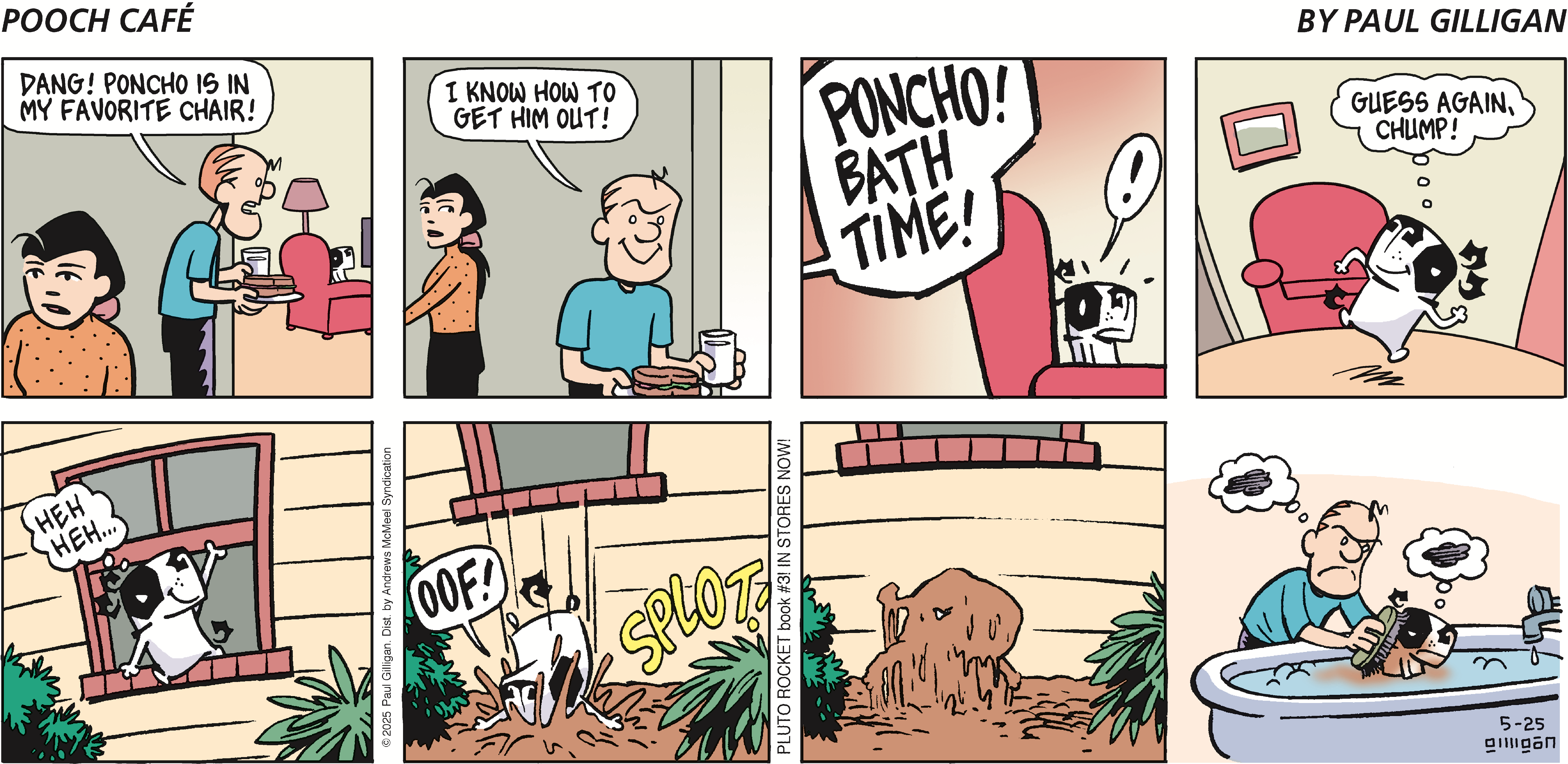 "Pooch Café" became an instant hit with readers and has grown to 300 newspapers over the past 10 years, being nominated for the National Cartoonists Society’s best comic strip in 2008. A stuffed version of Poncho has been visiting fans across the globe for the past two years, Ringtales is animating 30-second shorts of the Pooch gang’s adventures, and there is a feature-length CGI movie in the works at Sony Animation.