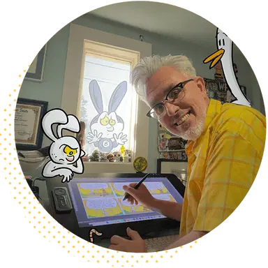 A longtime California resident, he is originally from London, England, and was once a stand-up comedian and a very minor pop star. He attended the University of Havana, Cuba, and was a Peace Corps volunteer in Honduras. Somewhere between his time living abroad and returning home, he decided to throw his life away and become a full-time cartoonist.