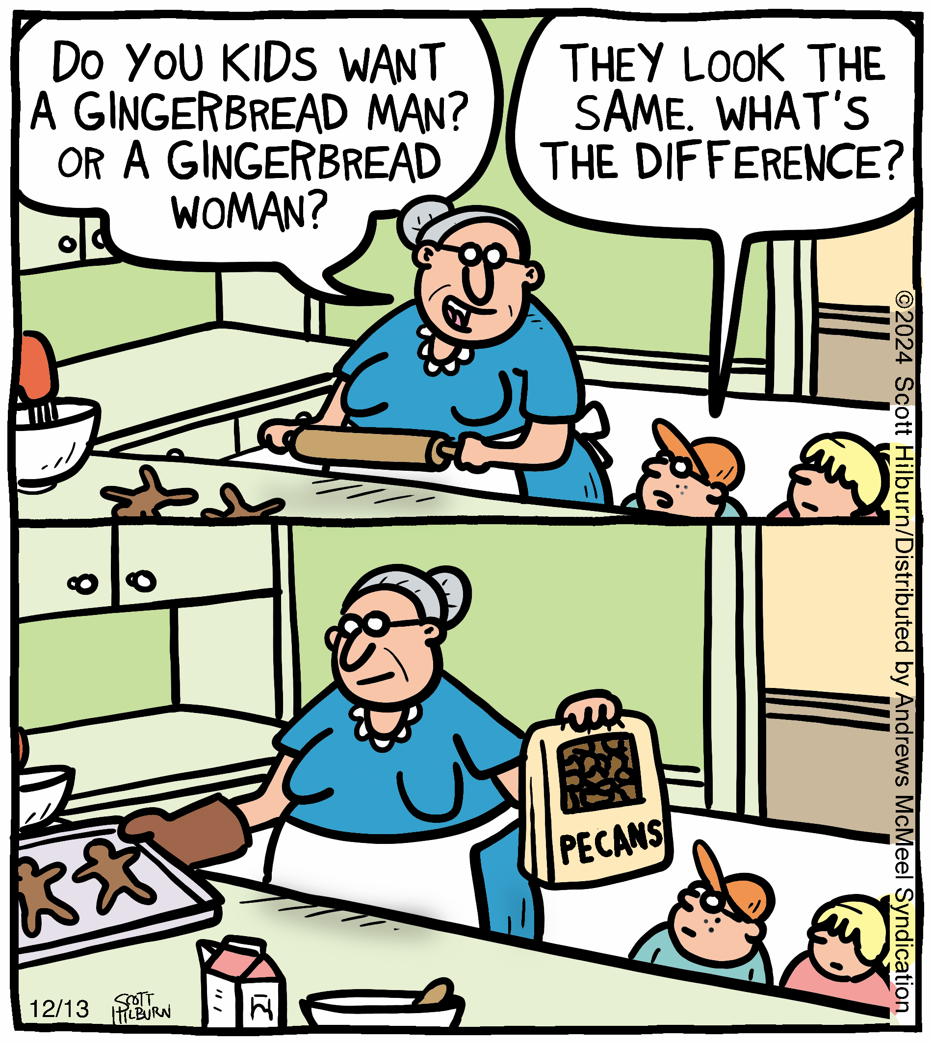 Born in 1971, Hilburn grew up in Garland, Texas, a suburb of Dallas. He earned his bachelor's degree from Argosy University and began working toward his master's degree in clinical psychology/professional counseling before interrupting his post-graduate studies to pursue his lifelong dream of becoming a starving cartoonist. "The Argyle Sweater" has quickly gained popularity and readership, becoming one of the most-viewed comics amongst GoComics.com’s vast catalog. Hilburn and his family currently live in the Dallas area.
