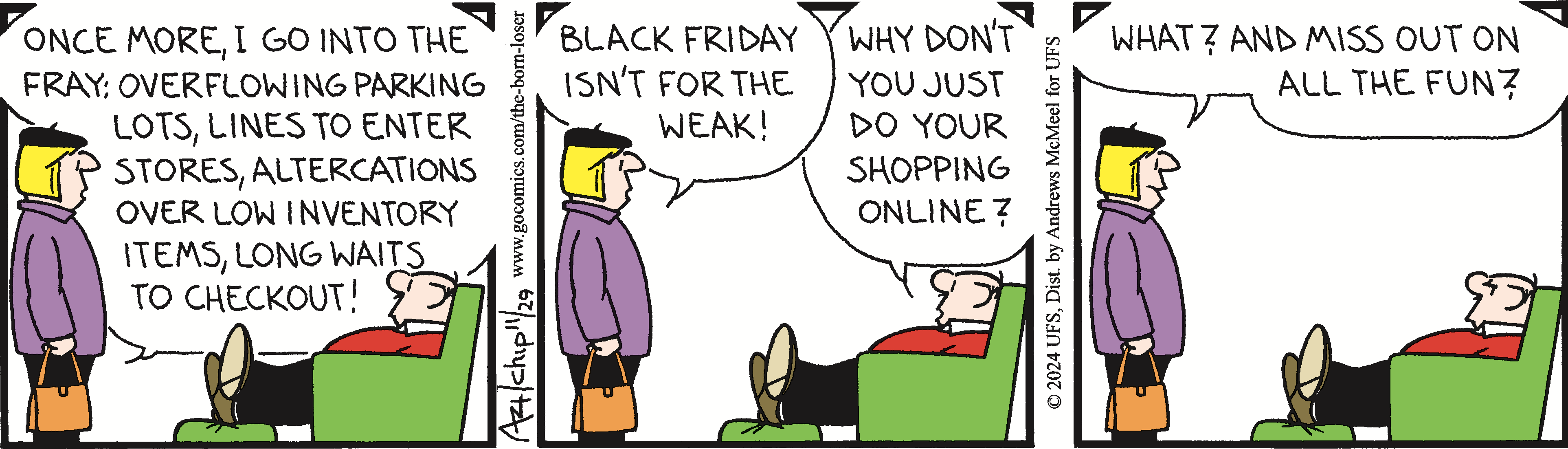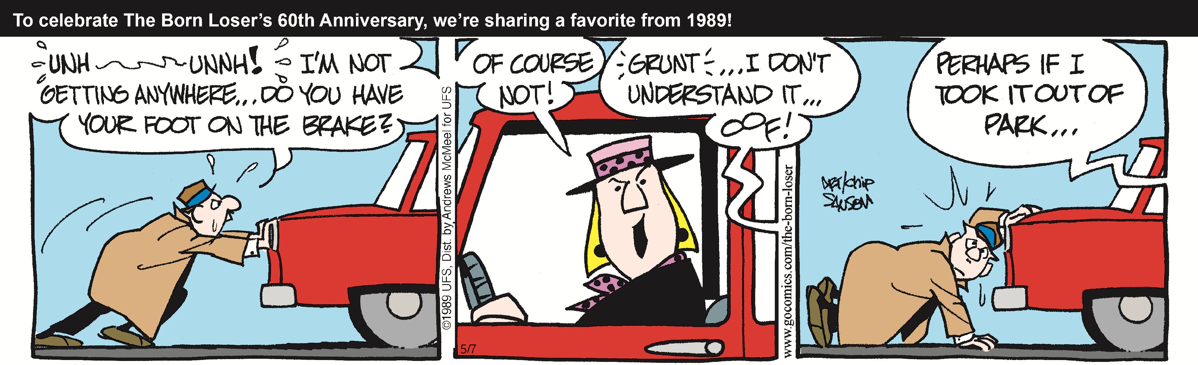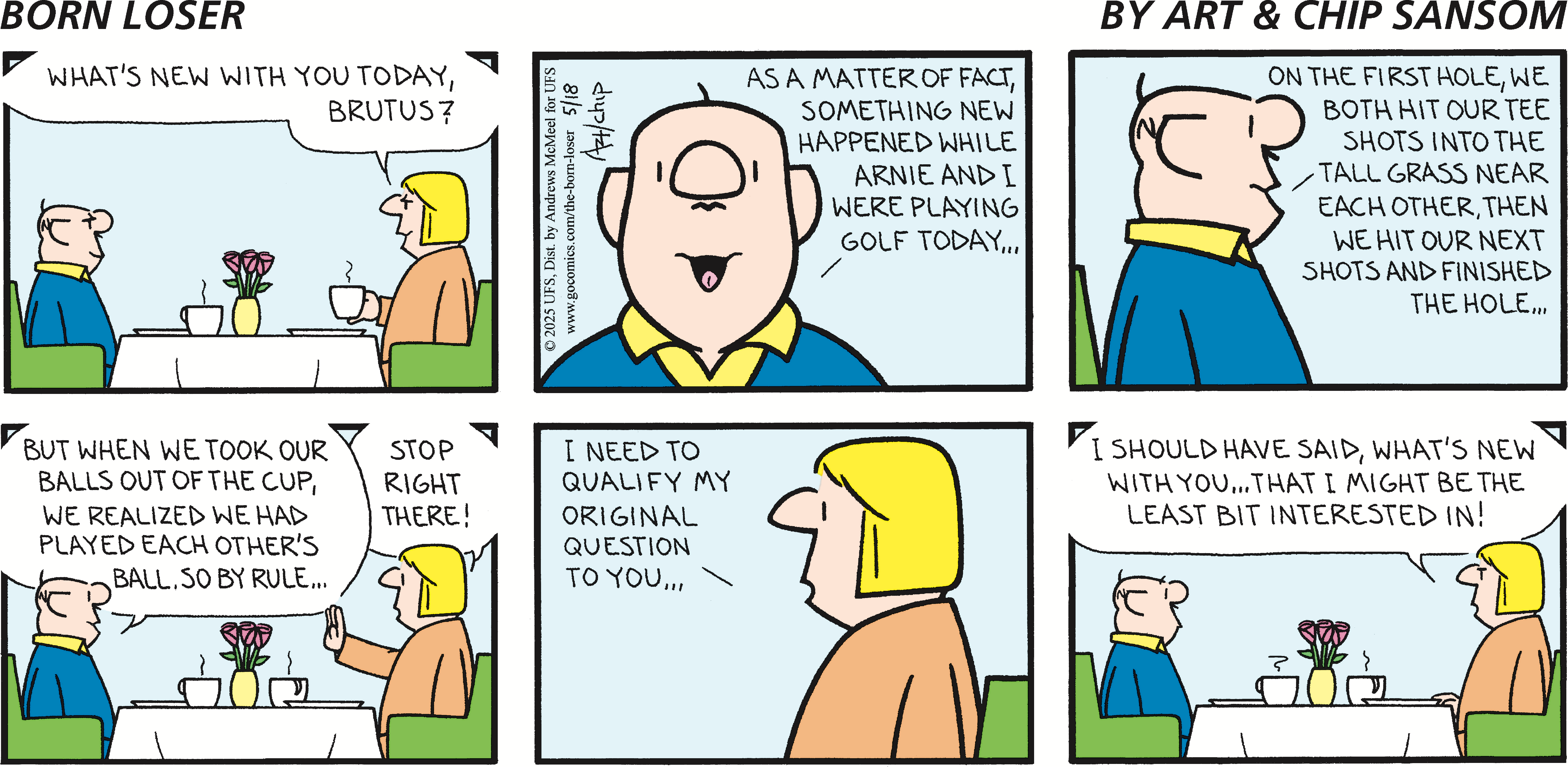 Chip Sansom is the cartoonist behind the comic strip "The Born Loser," which was created by his father, Art Sansom, in 1965. "I strive to provide a quick daily smile for everyone who reads The Born Loser," said Sansom. "Brutus Thornapple is a contemporary Everyman, who suffers the daily slings and arrows we all encounter. Being able to laugh at Brutus's misfortune makes it easier for the rest of us to face ours."