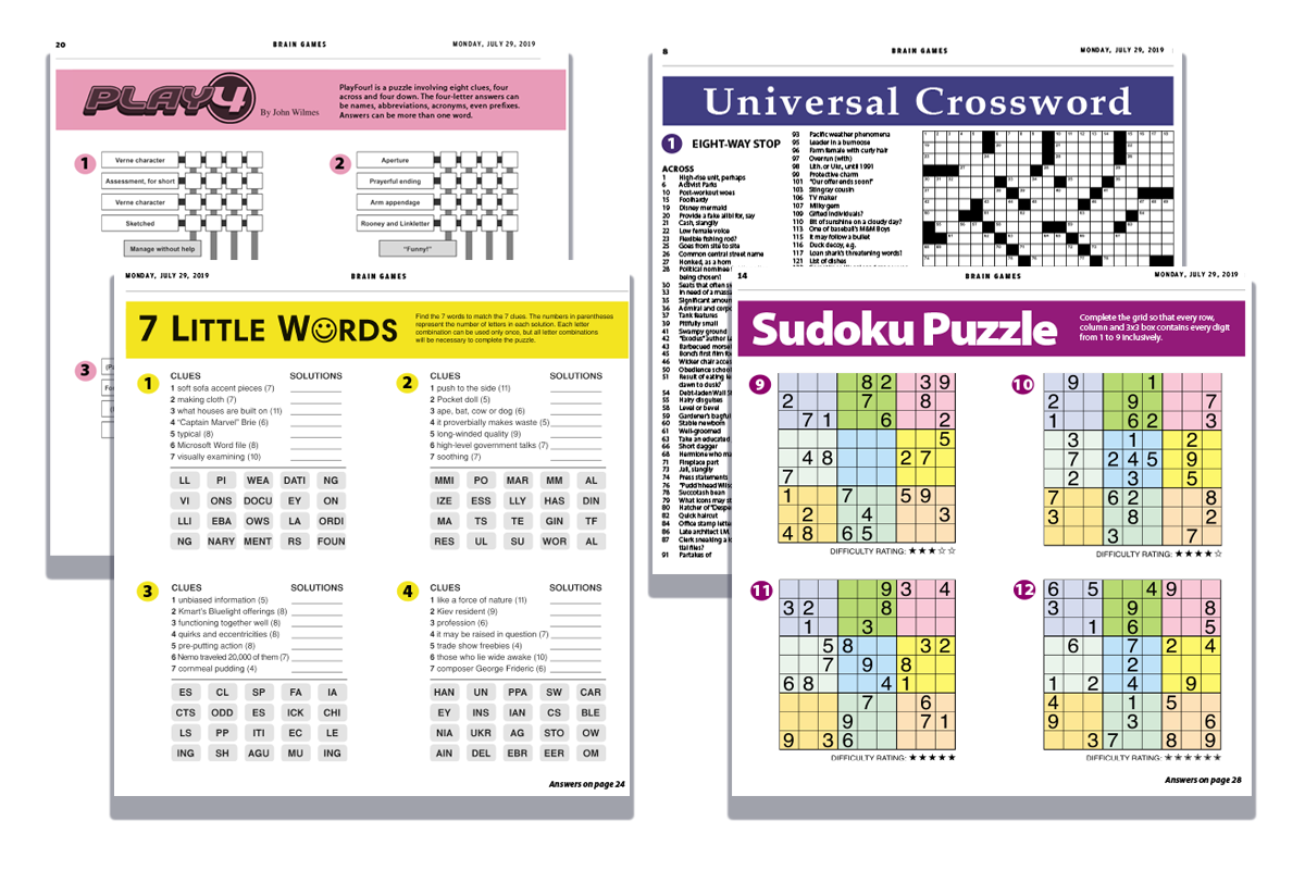 Provide your readers with an extra helping of their favorite puzzles and brain teasers in a custom supplement. Content and design provided by Andrews McMeel Pagination Service.